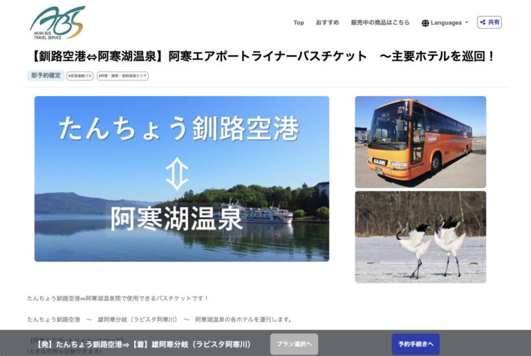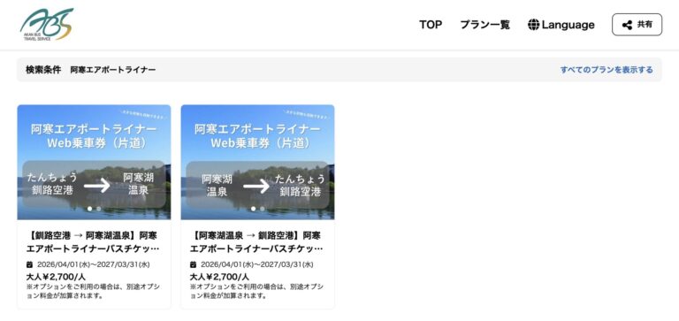 購入可能区間:釧路空港発〜阿寒湖温泉、釧路駅前(バスターミナル)発〜阿寒湖温泉
